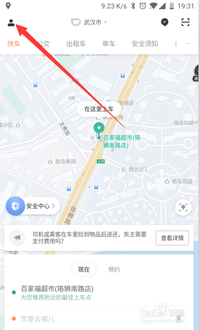 首先,打开滴滴,然后在首页中找到左上角人头标记,然后点击进入小我设置