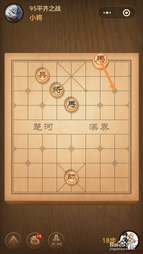 第十八步馬移动到下图中箭头标注的位置就过关了。