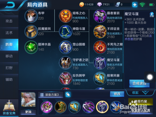 5出魔女大氅,这是最好用的魔法防御装备,与仇敌法师匹敌需要有必然的魔法防御能力,后期团战承伤也需要较硬的身板。