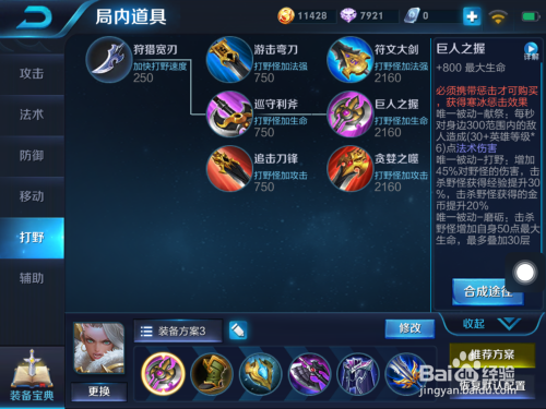 若是带惩击,就要出巨人之握,增添寒冰惩击,减速结果。且打野操纵2技术也可以快速清野,获得血量加当作。四级之后可以骚扰仇敌野区。