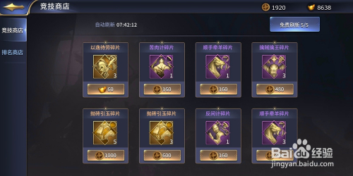 玩家经由过程在竞技场挑战敌手就可以获得积分,用积分可以在竞技场商铺来兑换计策碎片,每日玩家可以免费刷新5次页面,超出5次今后则会需要进行采办。