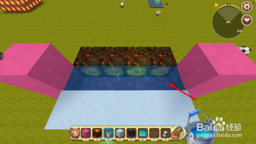 将空调安装位置上面1格挖失落,然后在雪块和硫磺晶砂中心的空档中倒入水。