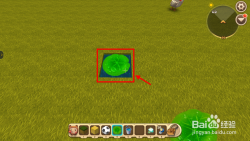 接着拿出水注入此格方块,然后在水面上摆放1只荷叶,如下图所示。