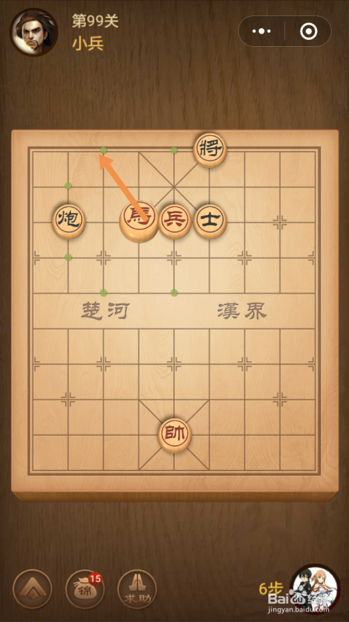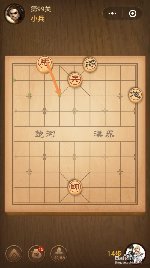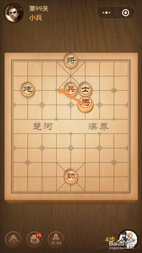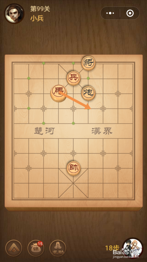 第99关第一步馬移动到下图中箭头标注的位置。