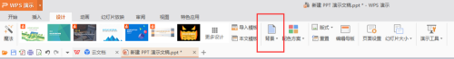 1、首先打开PPT,可以看到菜单选栏,选择设计,看到布景按钮,如图: