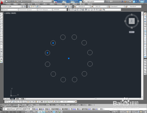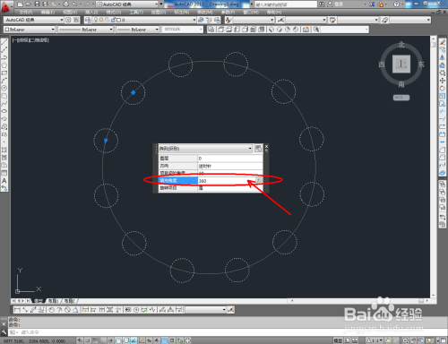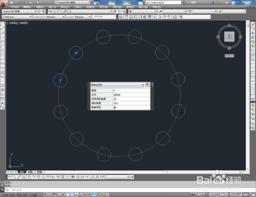 点击下方号令栏中的【项目】,可以对阵列的数目进行设置。点击输入数目12,可以看到,阵列建造出来的圆形图案数目变为12个(如图所示);