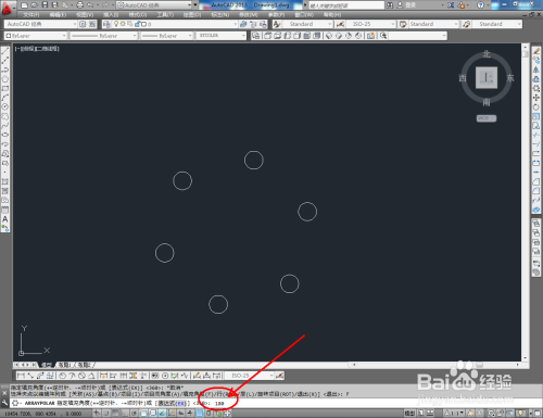点击下方号令栏中的【填充角度】,可以对阵列的角度进行设置。点击输入180度,可以看到,图案的阵列规模节制在180度之间(如图所示);