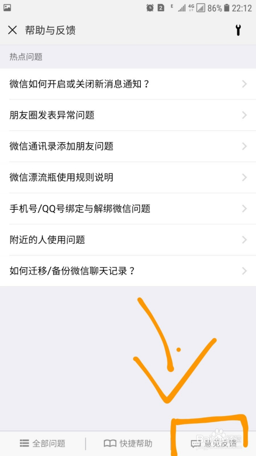 进入“帮忙与反馈”后,右下角有一项输入“定见反馈”,点击进去