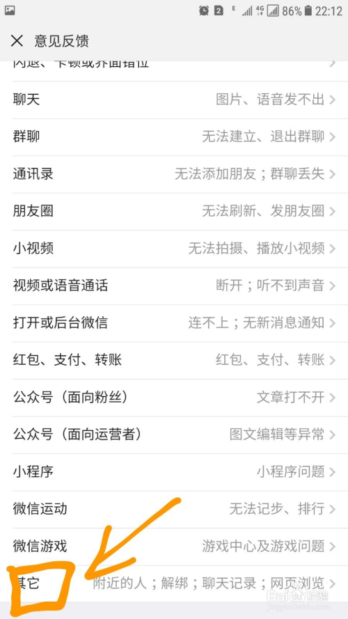 进入“定见反馈”后,往上拉,找到“其它”选项,点击进去;