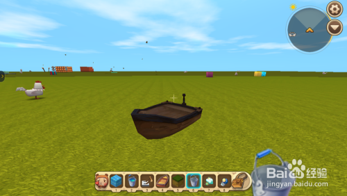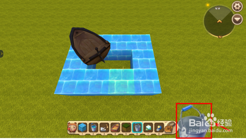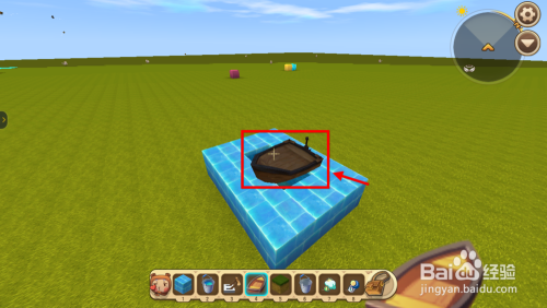 迷你宿世界陆行船怎么做?拿出独木划子放在水面上,如下图所示。