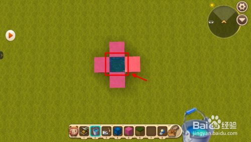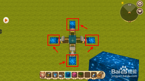 取肆意方块(迷你宿世界里的所有方块都合用),围当作如下图所示外形。