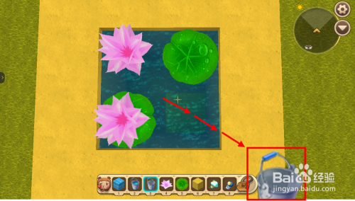 迷你宿世界悬浮荷叶怎么做?打完水后你会发现荷叶(花)没有消逝,而是悬浮在空中。