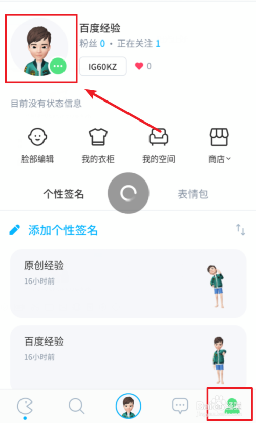 我们打开手机上的zepeto应用进入后,点击下方的最后一个图标进入小我中间,然后点击上方的头像。