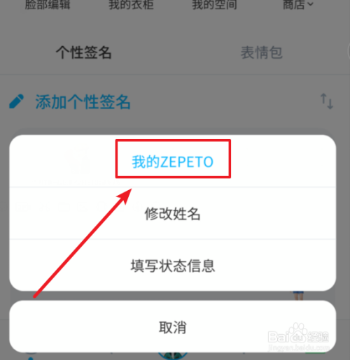 点击头像后,下面会弹出设置的选项。我们选择顶部的“我的zepeto”这个选项进入。