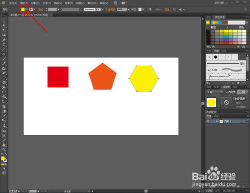 点击上方颜色选择框,将颜色选为橙色后,鼠标点击作图区域,建造一个边数为5的多边形。按照同样的步调,别离建造出分歧边数和颜色的多边形(如图所示);
