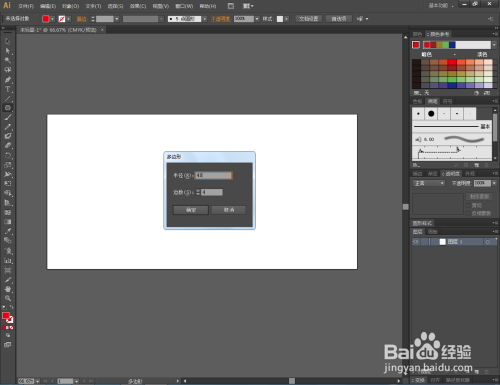打开Adobe Illustrator CS6软件,点击【多边形东西】,设置好上方菜单栏中的笔刷参数后,点击作图区域,弹出多边形设置框。半径设置为40,边数设置为4后,点击【确定】;