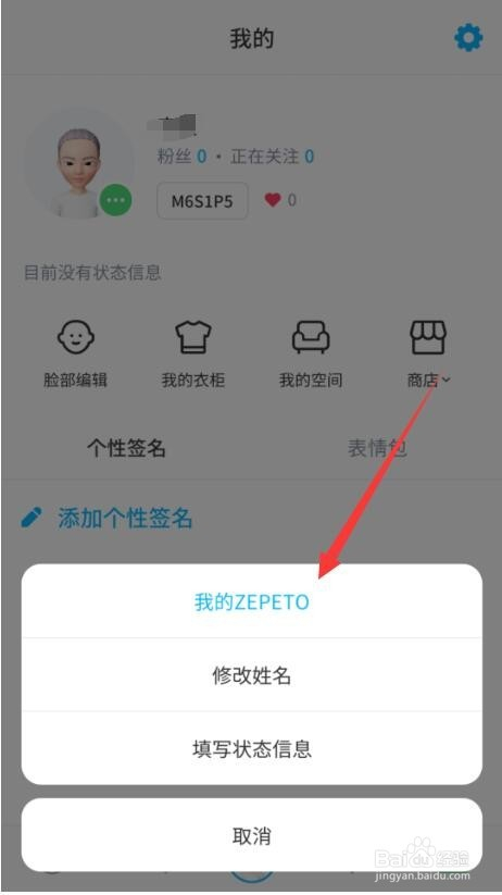 点击该头像区域,第一个是我的ZEPETO,这个点击设置还原选项