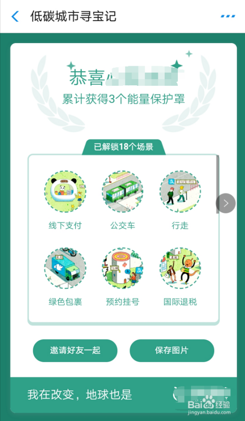 经由过程在蚂蚁丛林低碳糊口寻宝记活动界面中,点击汇集绿色场景,就会按照汇集数目获得响应的能量庇护罩,来看看怎么玩吧