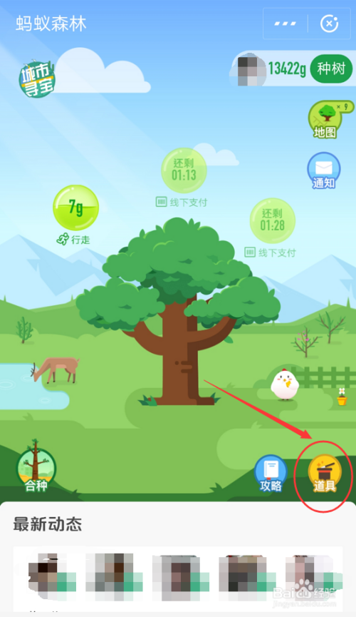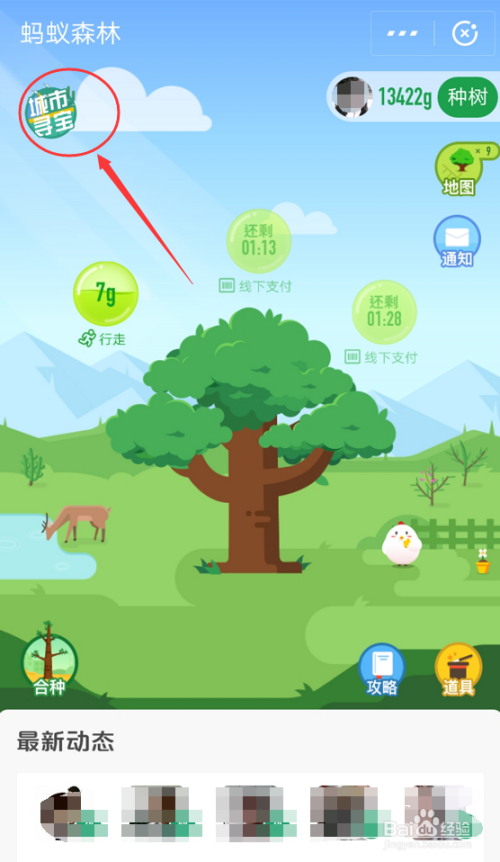 从付出宝手机app中,打开蚂蚁丛林本家儿界面,点击左上角的活动图标