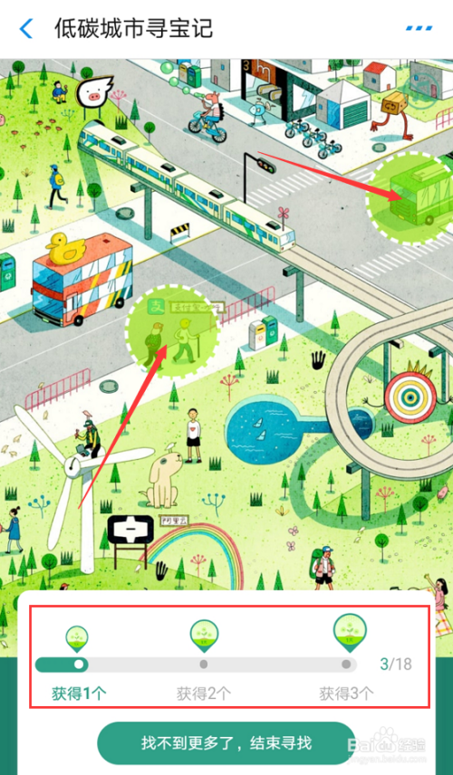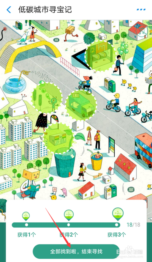 好比,当你看到和有关低碳糊口的场景时,点击场景即可,如图所示,就会呈现绿色圈圈,暗示汇集当作功