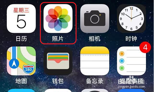 打开iPhone手机,首先就是要在桌面上找到“照片”选项了,见下图...