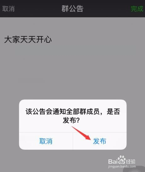 在进入群通知布告编纂页面之后,把我们想@所有人的内容打出来,点击右上角完当作。