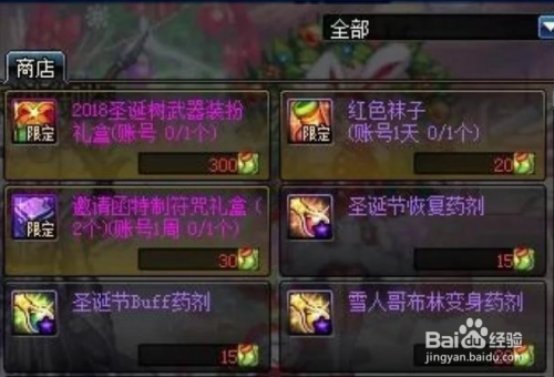 圣诞活动圣诞寻袜高文战,挑战保举地下城击败变装哥布林会失落落丢掉的圣诞袜,兑换商铺奖励如图所示。