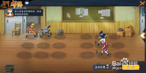 布阵,点击挑战,鸣人和牙放在最上面一排
