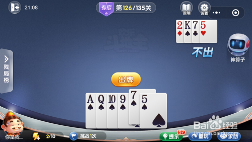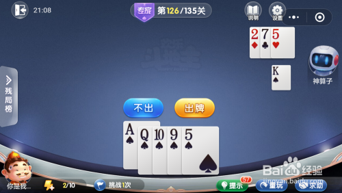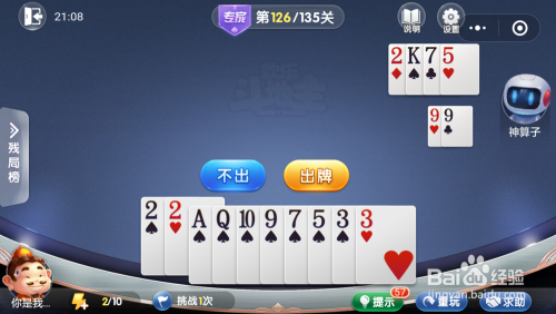 妙算子打出一张5,我打出一张9,接着打出一张Q一张10一张5就过关了。