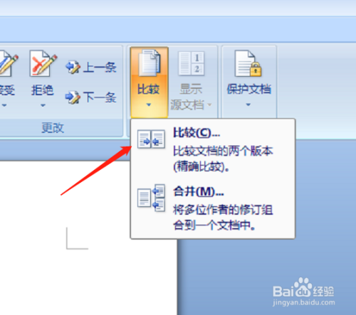 点击菜单栏中的“核阅”——“比力”;