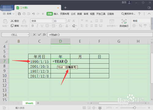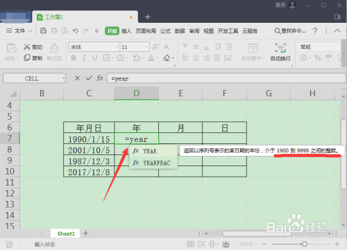 取日期年份的话,输入=year并空格。