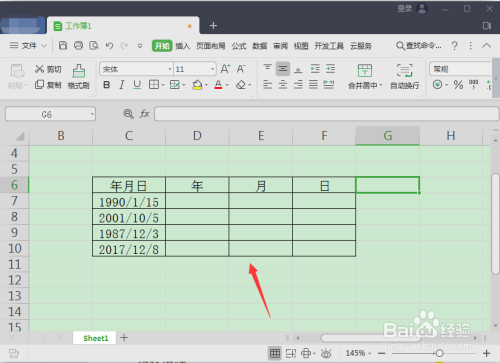 选择求取后的年代日单位格,在单位格右下角拖拽完当作全数求取工作。