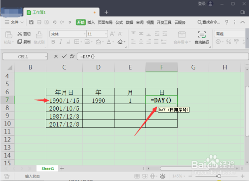 取日期的话,输入=day并空格,拔取方针单位格并回车确定。