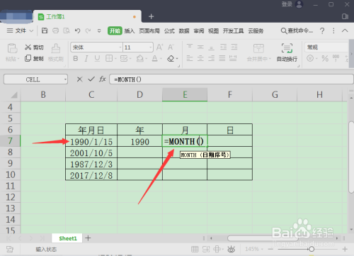 取日期月份的话,输入=month并空格,拔取方针单位格并回车确定求取。