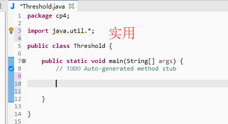 点击Finish按钮后可以看到,我们已经建立了一个只包含类名和本家儿方式的空白类,若是要获得阈值函数的功能下面还需要添加上具体的实现过程