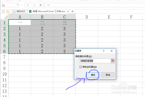 按下Ctrl+T键弹出建立表窗口,然后单击确定,此时即会为选区添加表格样式。