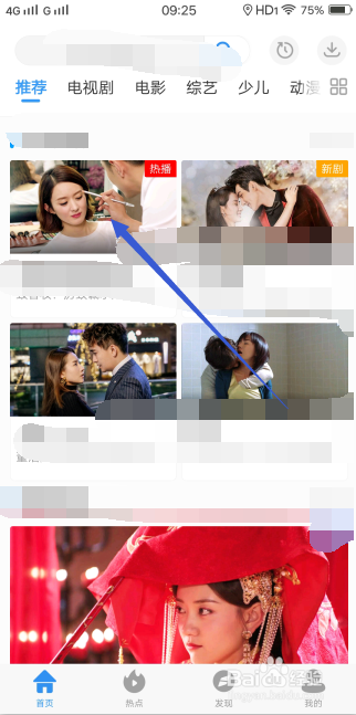 首先打开手机中的视频应用,进入到首页保举视频,找到本身要缓存的视频点击进入。