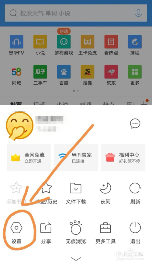 打开QQ浏览器,找到“设置”;