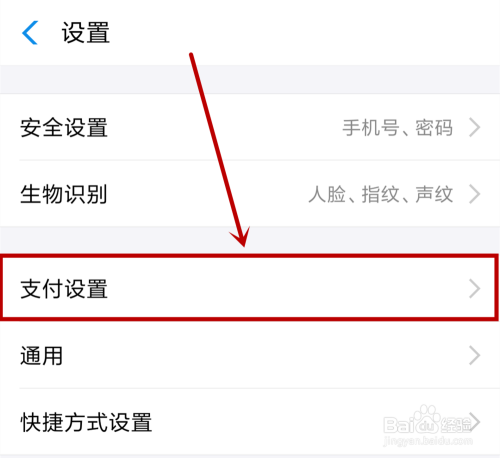 在打开的【设置】界面找到并点击点击【付出设置】选项