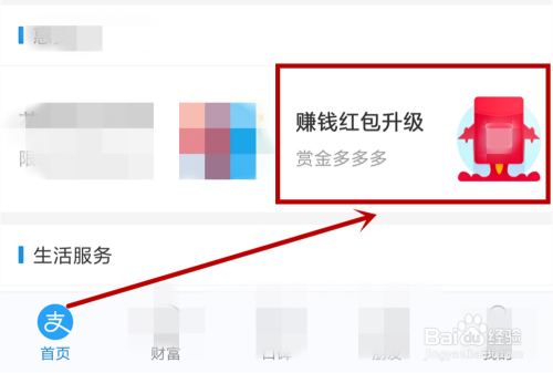 在付出宝首页点击【赚钱红包进级】,进入界面后点击【当即赚取shang金】,然后分享红包领取体例,他人利用红包付出就可赚取收益了