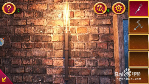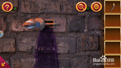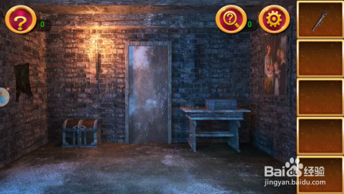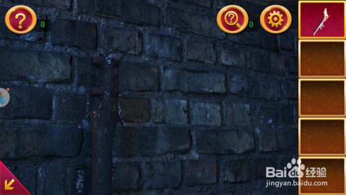 点击左墙面的黑布,操纵火炬照亮它,我们会获得一把钥匙。