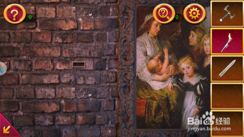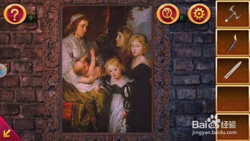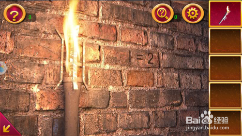 点击右面墙上的画像,操纵火炬将画像上的人物头像点亮,我方就会获得一组数字和一个机关隘。