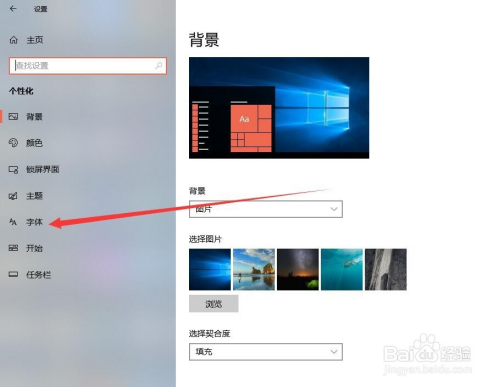 个性化页面中我们可以看到左侧导航中的字体设置选项,点击该导航选项