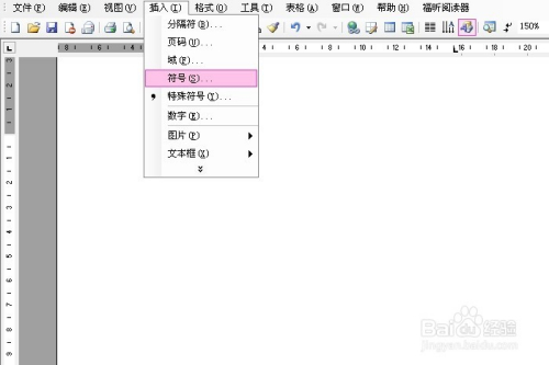 点击“插入”菜单,选择“符号”。