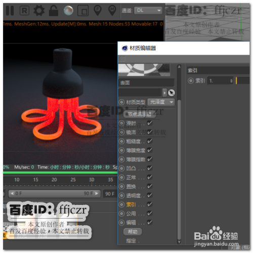 首先申明该场景的组成:模子中由灯身和灯管二部门构成,并添加了一个平面作为场景的地面。