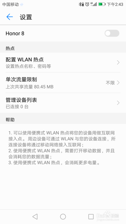 打开便携式WLAN热点,可以看到设置装备摆设WLAN热点。
