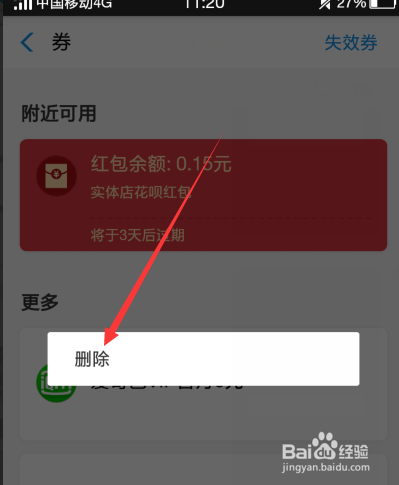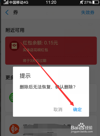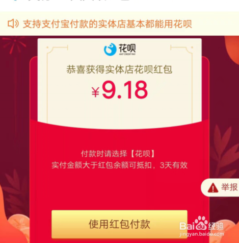 然后我们长按阿谁我们领取的花呗红包