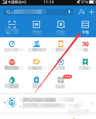 进入付出宝本家儿页面后点击右上角的【卡包】