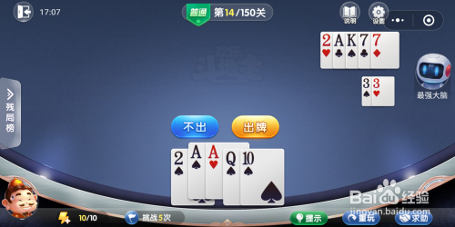 欢喜斗地主残局闯关14,不消费脑子,正常出牌就能垂手可得赢。