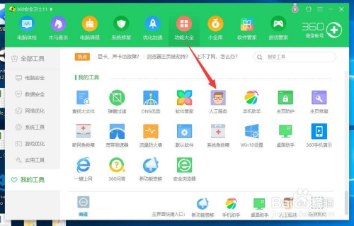 首先在我们的电脑上找到360,然后打开360,找到上面的功能年夜全,点击进入功能年夜全